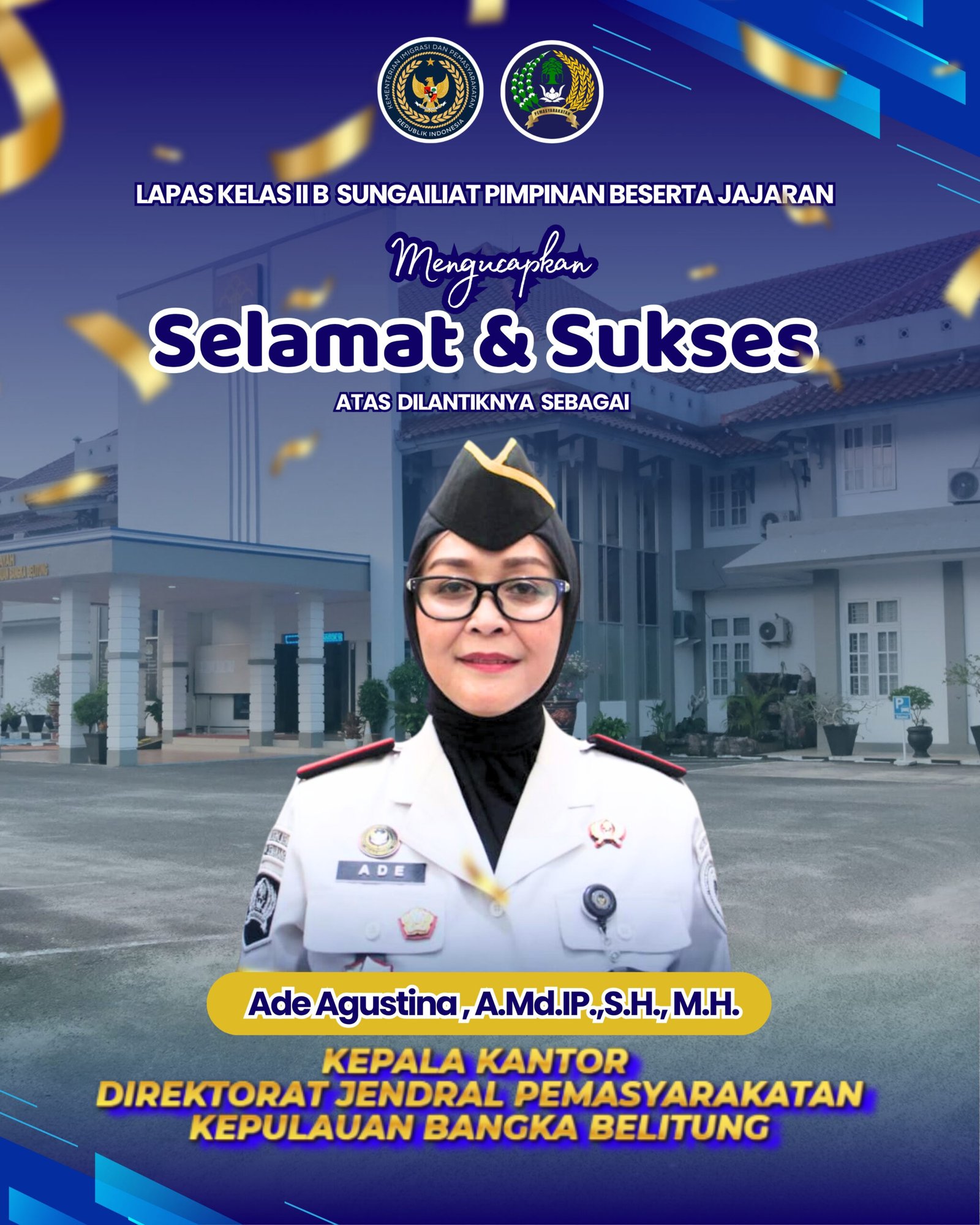 LAPAS KELAS II B SUNGAILIAT PIMPINAN BESERTA JAJARAN MENGUCAPKAN SELAMAT & SUKSES ATAS DILANTIKNYA SEBAGAI KEPALA KANTOR DIREKTORAT JENDRAL PEMASYARAKATAN KEPULAUAN BANGKA BELITUNG