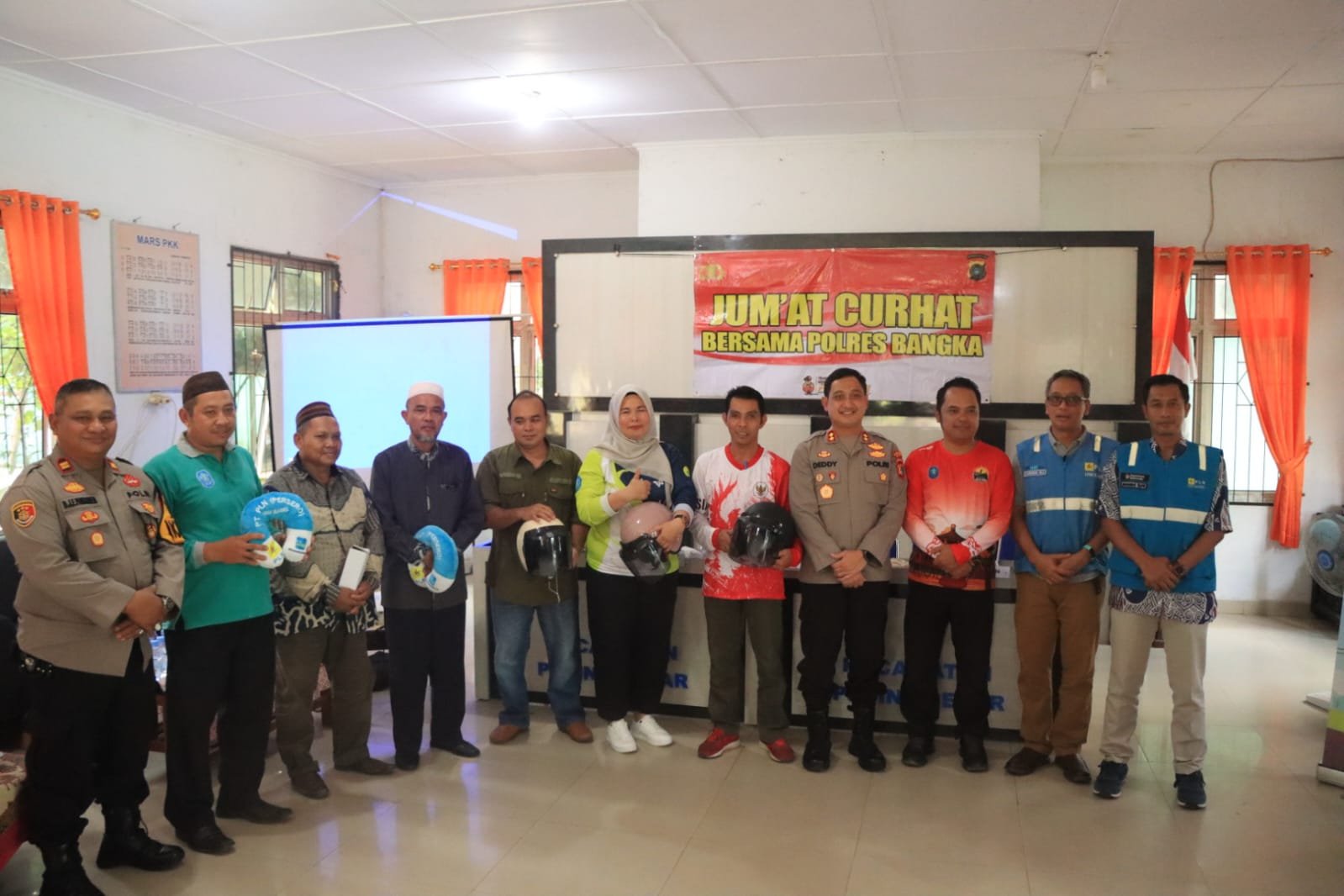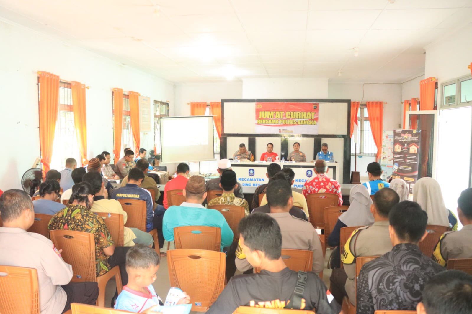 “Alhamdulillah hari ini kita berkumpul dalam rangka kegiatan rutin Polres Bangka progam Jumat Curhat. Mendengarkan langsung berbagai permasalahan keluhan, usulan maupun informasi gangguan kamtibmas yang terjadi dilingkungan masyarakat,” kata AKBP Deddy Dwitiya Putra