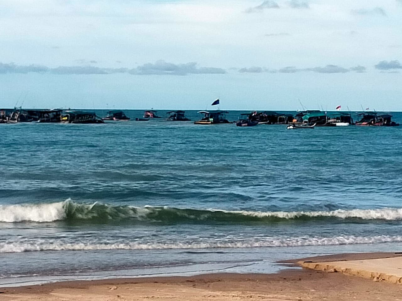 βBerdasarkan hasil pantauan tim media di lokasi, tampak puluhan unit tambang inkonvensional jenis sebuh apung (ponton) beroperasi melakukan penambangan pasir timah di pinggir laut.
