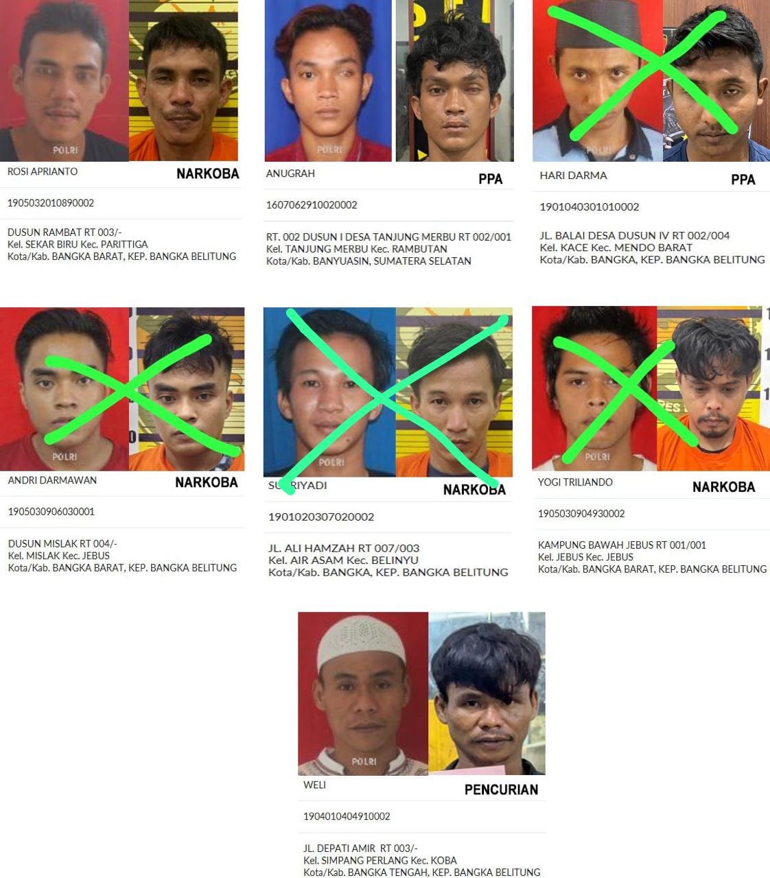 BANGKA β Hingga hari ini, sebanyak lima dari delapan tahanan yang sebelumnya melarikan diri dari rumah tahanan (rutan) Polres Bangka telah berhasil diamankan kembali oleh aparat kepolisian. Sementara itu, tiga tahanan lainnya masih dalam pengejaran tim gabungan.