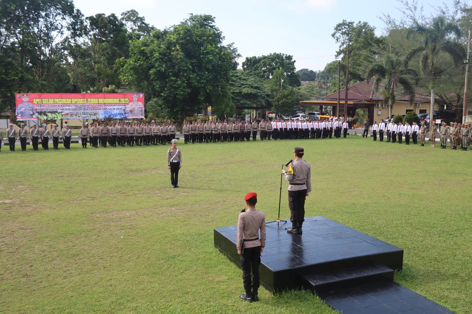 Kapolres Bangka, AKBP Deddy Dwitiya Putra, S.H., S.I.K., memimpin apel tersebut, yang diikuti oleh jajaran personel Polres Bangka dan instansi terkait.