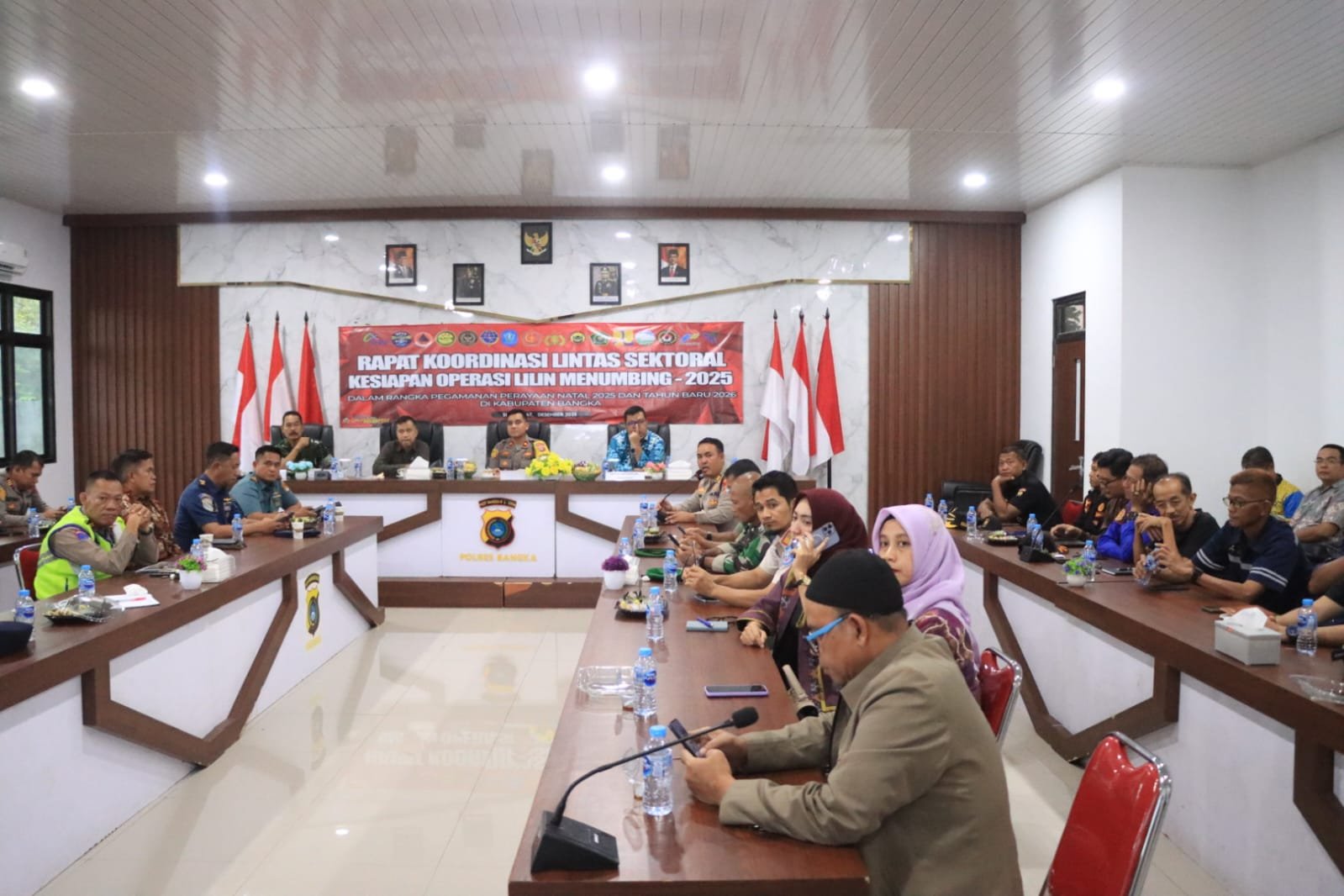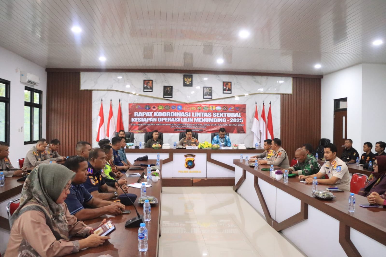 Rapat koordinasi tersebut dipimpin langsung oleh Kapolres Bangka AKBP Deddy Dwitya Putra, dan diikuti oleh Pejabat Utama (PJU) Polres Bangka, para Kapolsek jajaran, serta dihadiri unsur Forum Koordinasi Pimpinan Daerah (Forkopimda) Kabupaten Bangka dan instansi terkait, Selasa (19/12/2025).