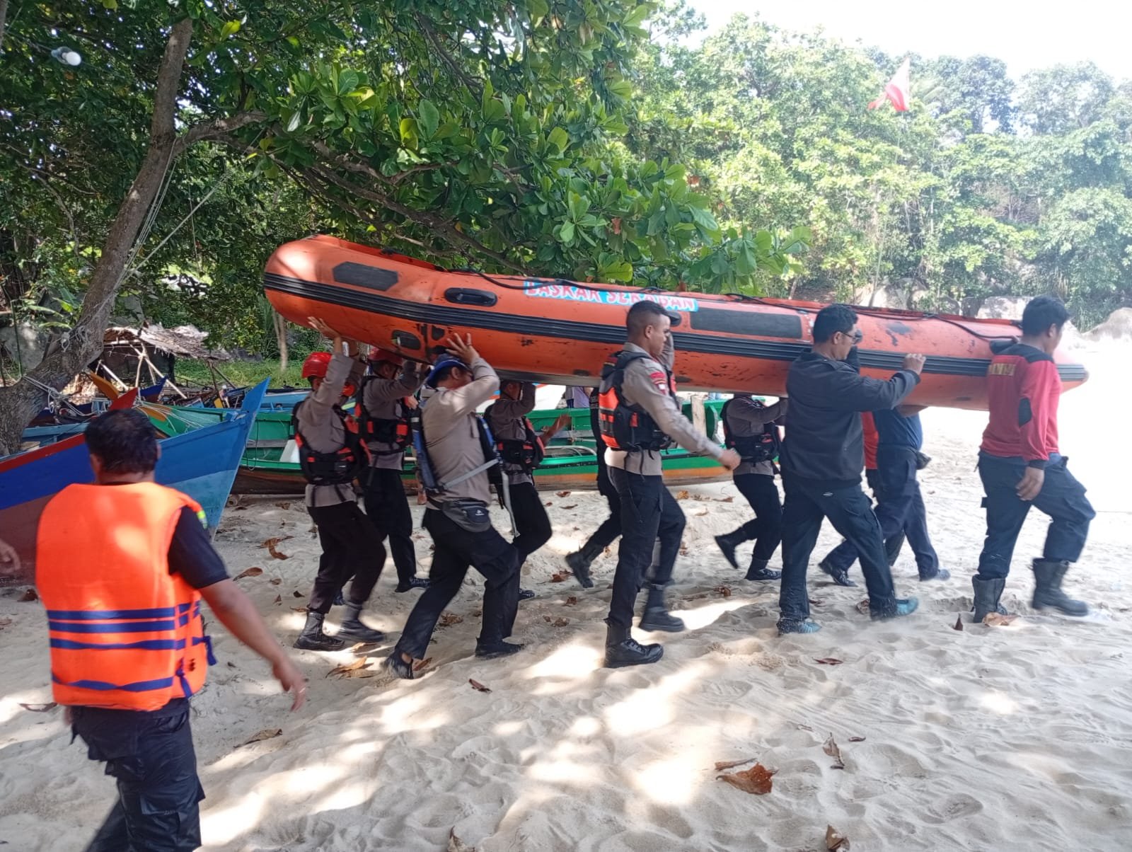 Kegiatan SAR tersebut dipimpin langsung oleh Kasat Polairud Polres Bangka, AKP Arief Fabillah, SH, bersama personel gabungan yang terdiri dari Sat Polairud Polres Bangka, Dit Polairud Polda Kepulauan Bangka Belitung Pos Sandar, Tim PRC SAR Brimob Polda Kep. Babel, BPBD Kabupaten Bangka, Tim Laskar Sekaban, Tim Medis PSC Sungailiat, serta dibantu nelayan setempat Teluk Uber Sungailiat.