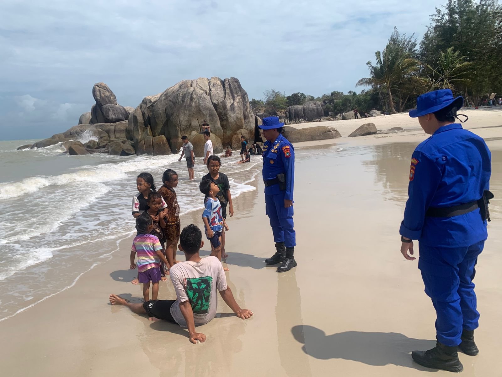βAnggota Sat Polairud juga melakukan pemantauan aktif terhadap aktivitas pengunjung di sekitar pantai untuk memastikan situasi tetap aman dan kondusif,β tambahnya.